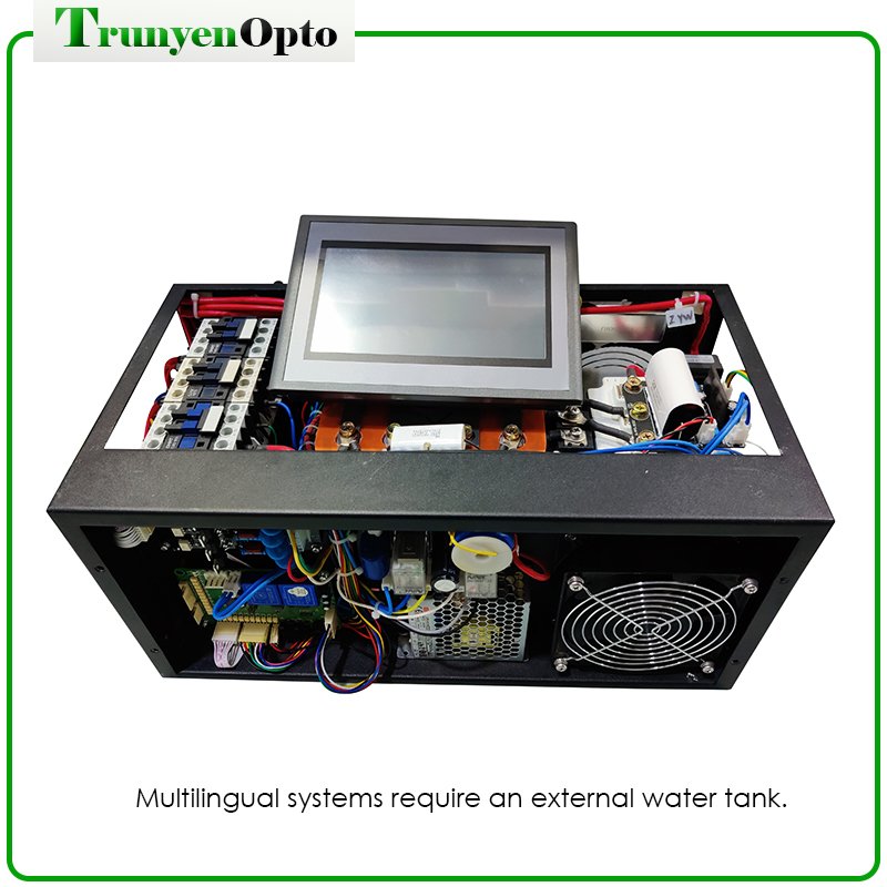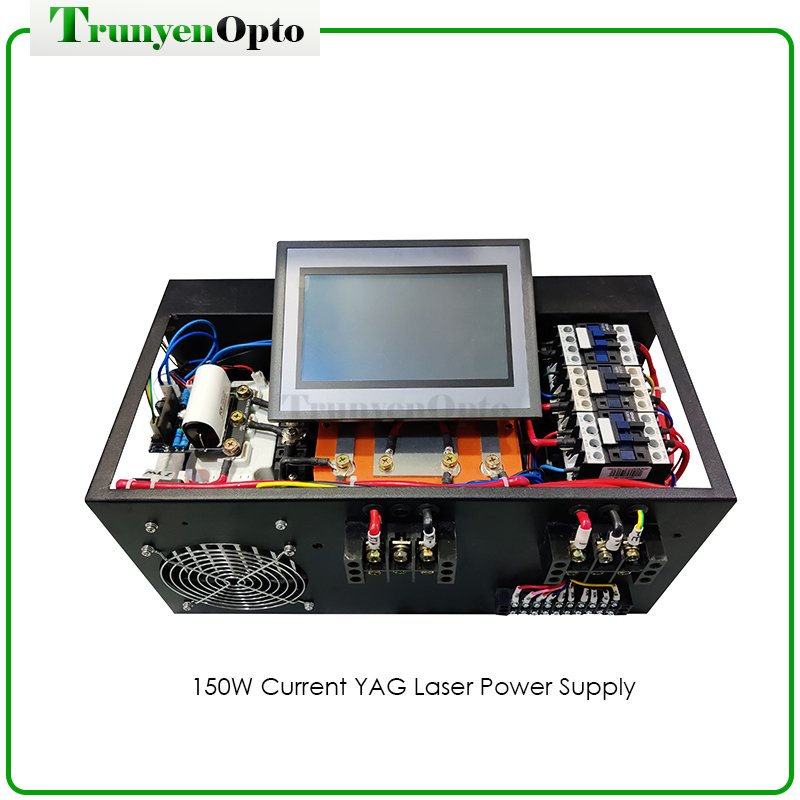 A 150W YAG laser power supply is suitable for a desktop jewelry laser welder. It has an air-cooled water tank temperature control system. Laser energy settings can be achieved via a 7-inch touchscreen.